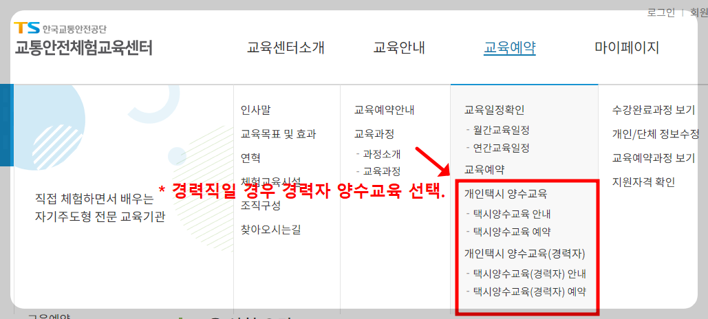 1. 개인택시 양수교육 신청 사이트 - 교통안전체험교육센터