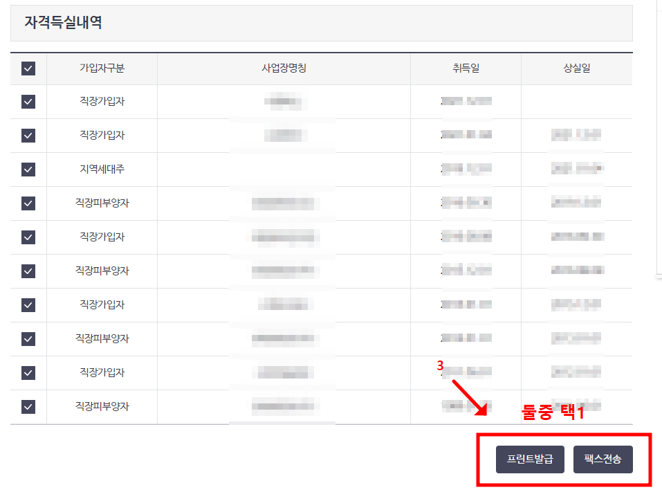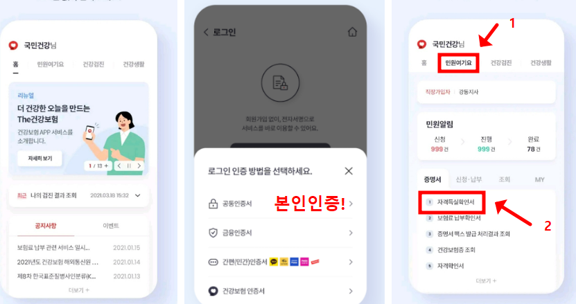 • 내 건강보험 - 건강보험 자격확인 - 자격득실확인서 발급 순 클릭.