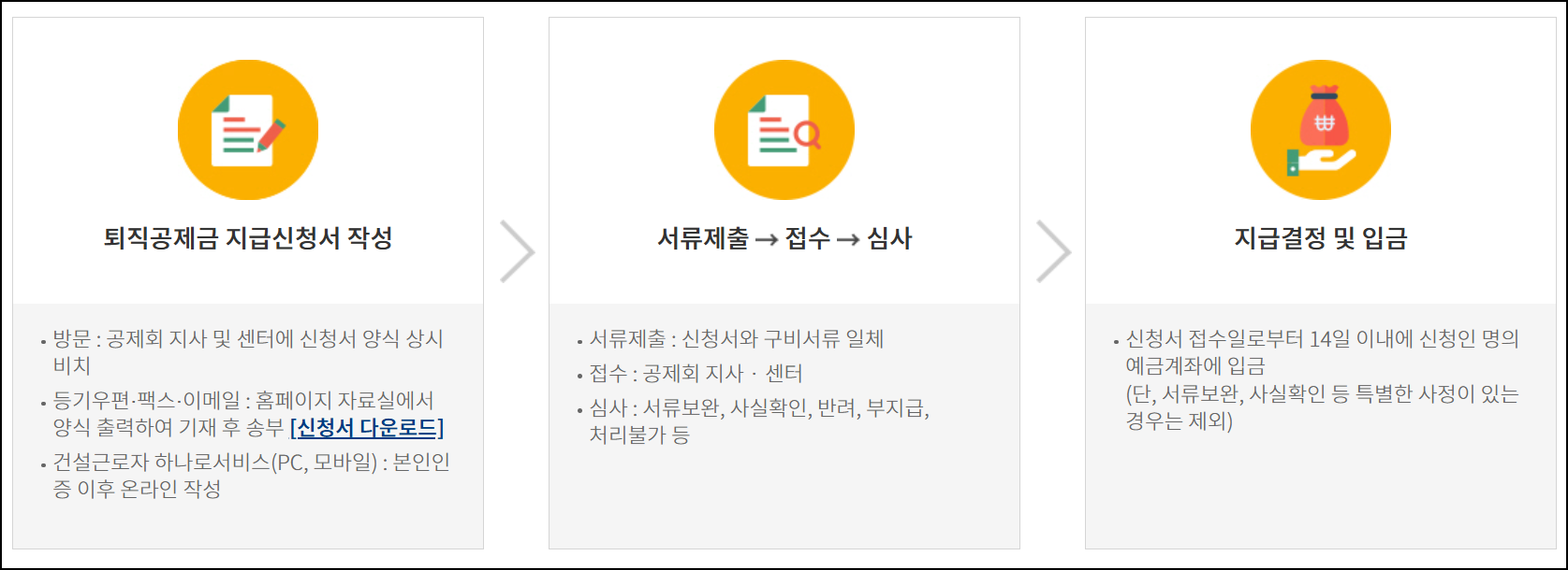 근로자가 퇴직하게 되면, 적립된 퇴직공제금을 청구할 수 있습니다. 퇴직 후 지급 절차는 다음과 같습니다