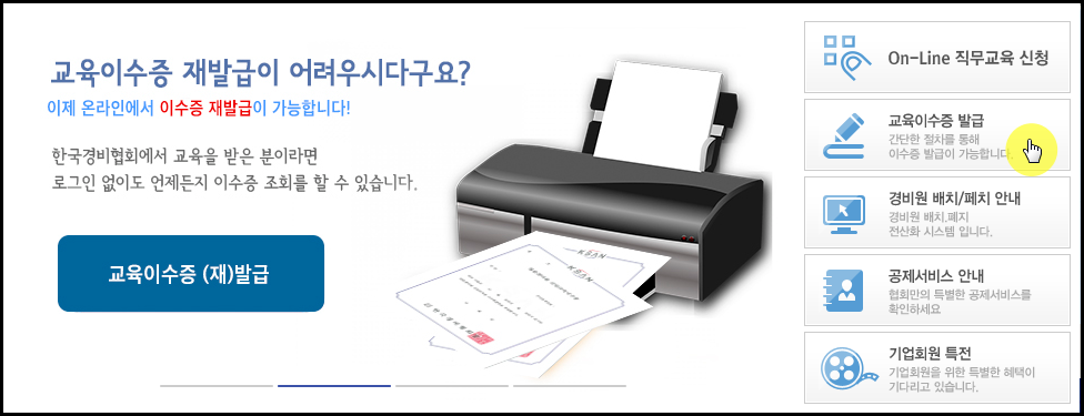 또한 한국경비협회에서 교육 받은 이수증만 발급이가능하며 pc에서만 사용 가능 합니다.