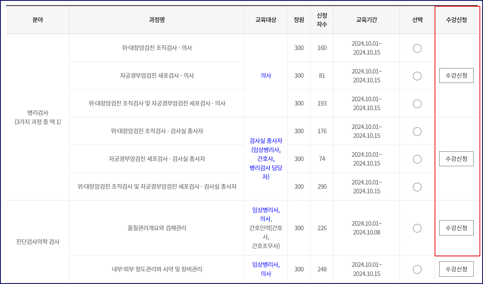 - 모든 교육은 관련 검사를 담당하는 분들이 수강하시기를 권장합니다.