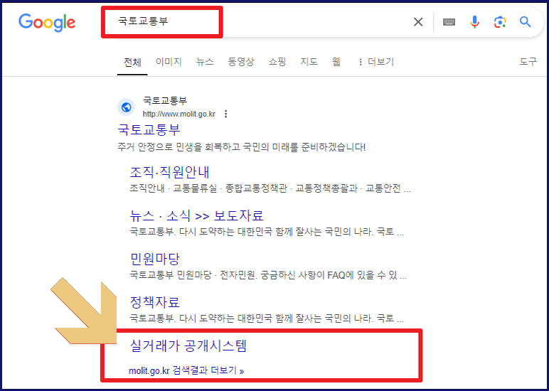 - 검색 결과에서 '실거래가 공개시스템'을 선택하여 해당 페이지로 이동합니다.