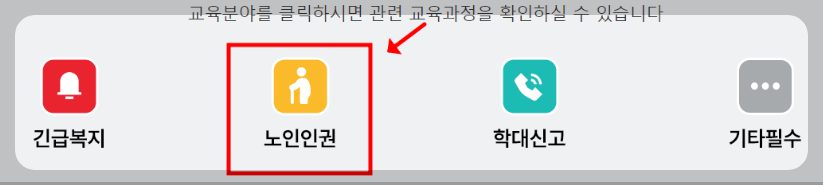 - 노인인권 의무교육 - 한국보건복지인재원 홈페이지내 수강 가능.