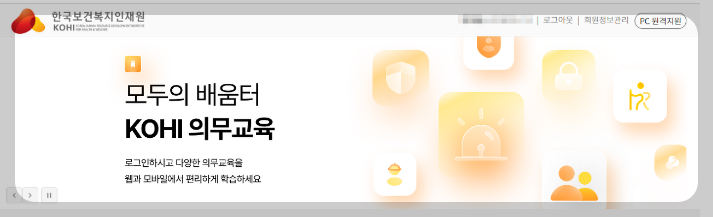 - kohi 의무교육 사이트인 한국보건복지인재원 홈페이지 접속.