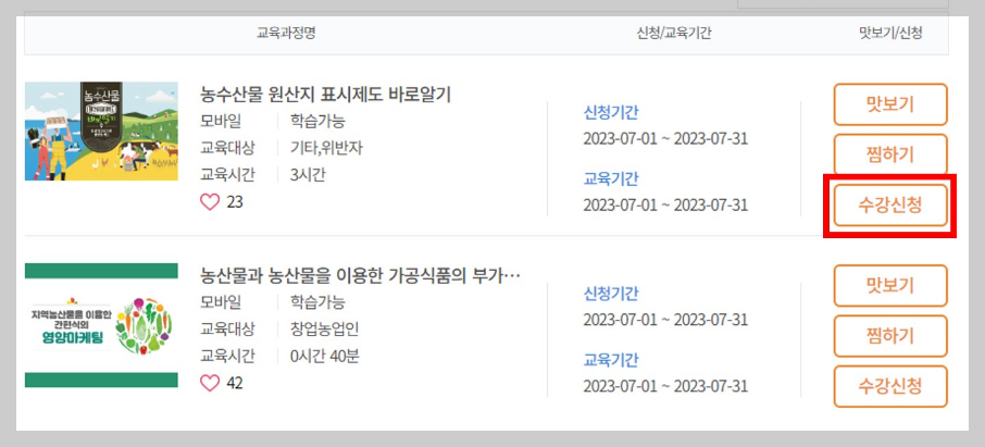 - 교육과정 선택 후 수강신청 버튼 클릭.
