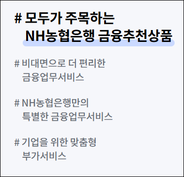 - 실시간 채팅 상담: 농협은 실시간 채팅 상담 기능을 제공하여, 고객이 빠르고 간편하게 문의사항을 해결가능합니다.