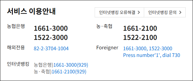 농협 인터넷 뱅킹 고객센터 정보