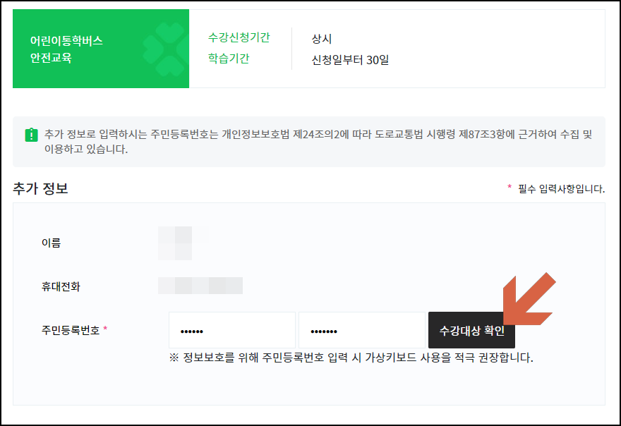 3. 수강대상 확인 및 추가 정보 입력.