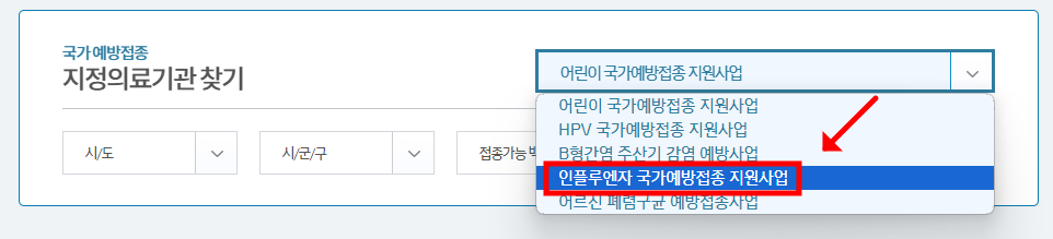 - 지정의료기관 - 인플루엔자 국가예방접종 지원사업 클릭.