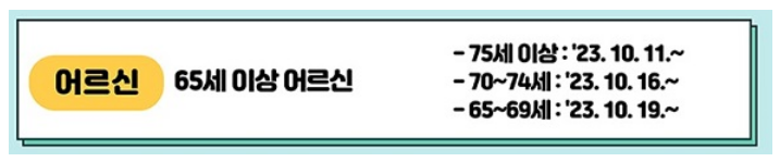 - 75세 이상(1948년 12월 31일 이전 출생자) : 2023년 10월 11일부터 ~