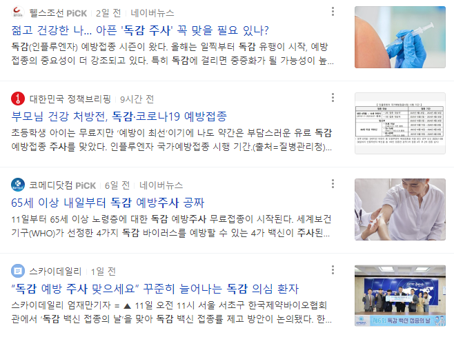 2. 독감무료접종 일정 - 대상별 일정 위 포스팅 참조.