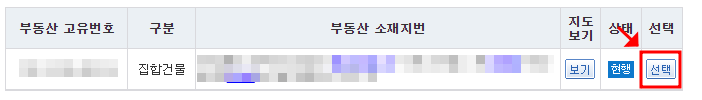 - 부동산 소재 지번 확인 후 선택 클릭.
