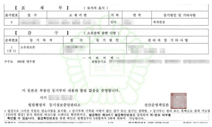 - 등기부등본 보는 법 및 유의사항 위의 포스팅 참조