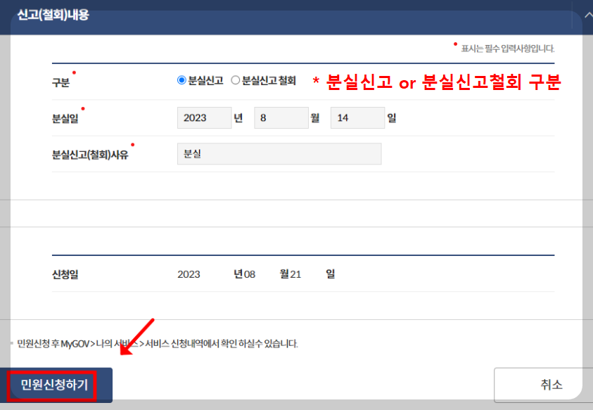 중요한 증명이기에 빠른 분실신고를 진행하는 것이 바람직 합니다. 분실신고 민원은 민원 신청 이후