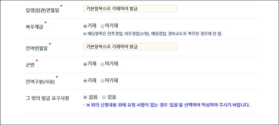 | 미복무자(면제자 포함) | 주민센터에서 발급 요청 가능 |