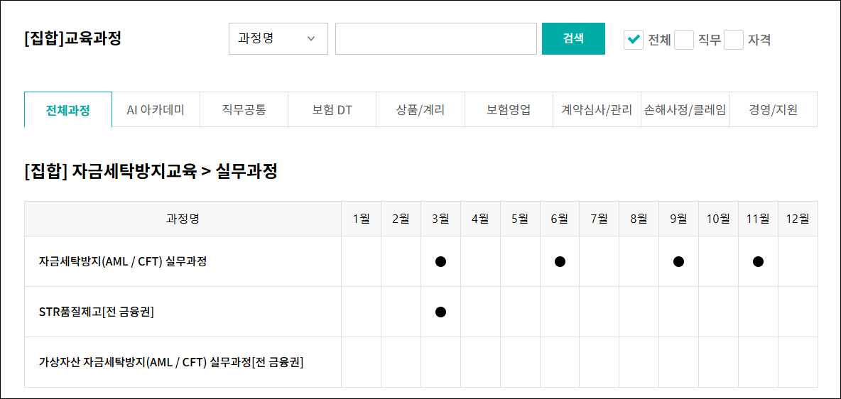 | 상품 개발 및 관리 교육 | 보험 상품 설계 및 개발, 상품 리뉴얼, 차별화된 상품 전략 개발 | 다양한 보험 상품의 설계 및 관리 능력을 향상시키는 것 |