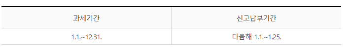 과세자 종류별 신고기간을 이미지 표를 통해 빠르게 알아보겠습니다.
