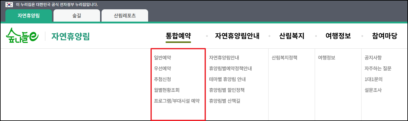 숲나들이 홈페이지 예약방법