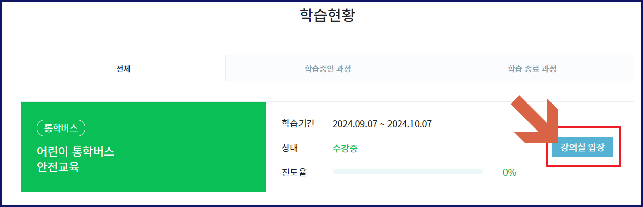 7. 신청이 완료되면 '나의 강의실'에서 학습 현황을 확인합니다.