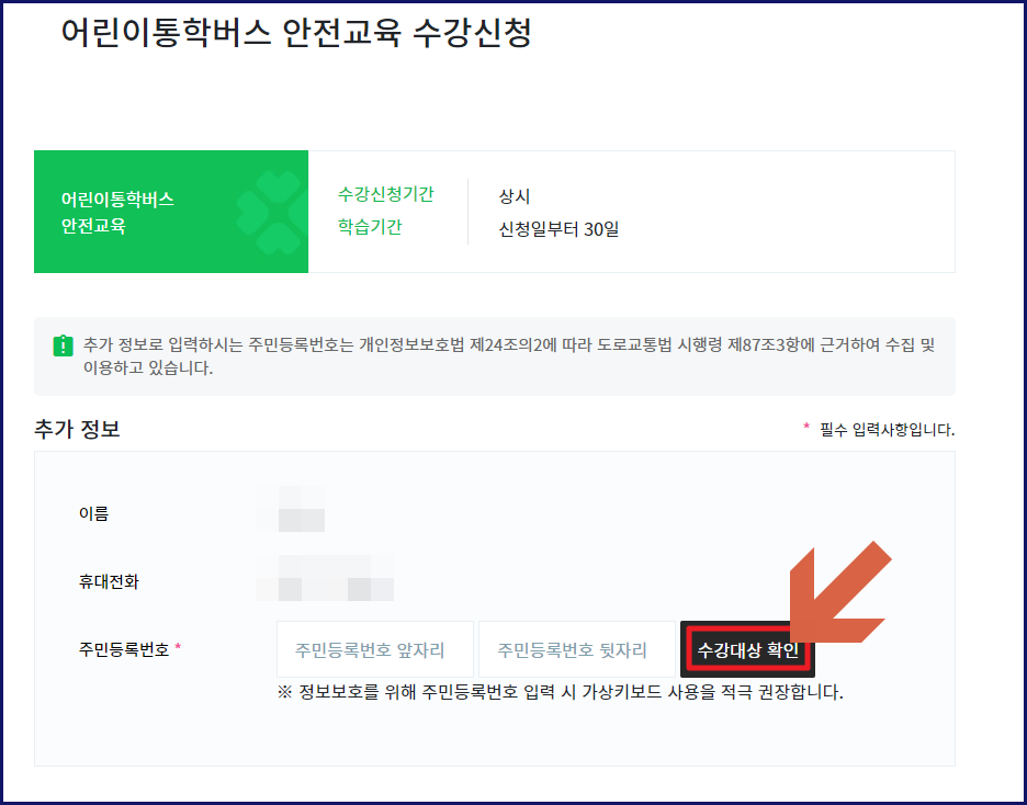 🔍어린이 통학버스 안전교육 대상자 조회👉