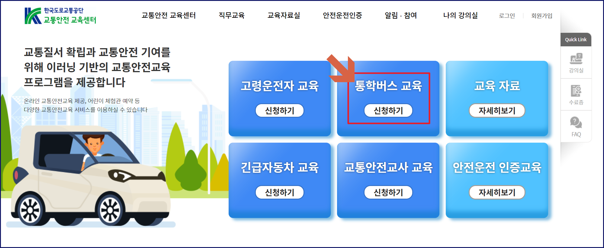 어린이통학버스 안전교육 바로가기 (+교통안전 교육센터)
