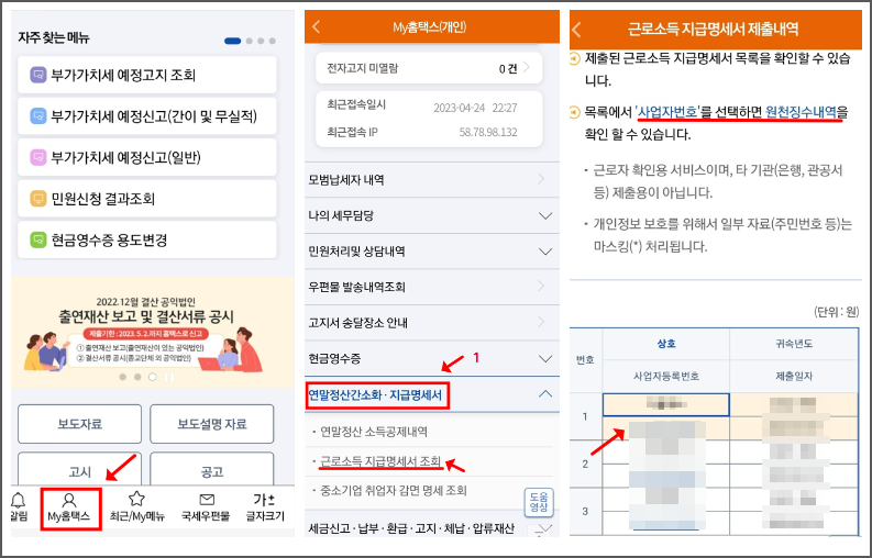 - 원천징수영수증 인터넷 발급 - 홈택스 홈페이지 또는 손택스 열람.