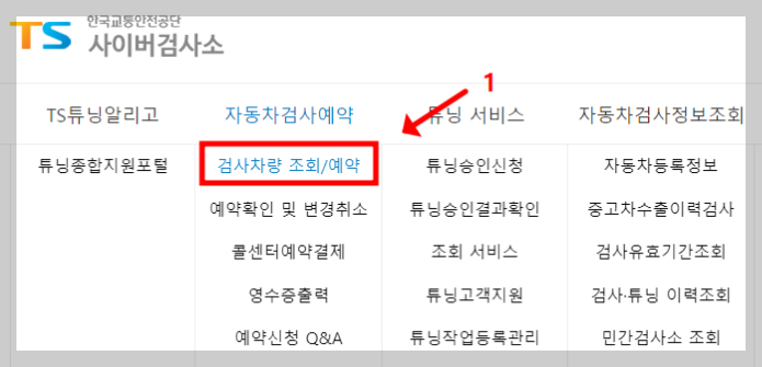 2. 자동차 검사 예약 - 검사차량 조회/예약 클릭.