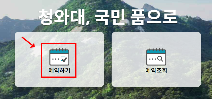 - 청와대 국민품으로 웹사이트 접속 후 "예약하기" 클릭 (아래 버튼클릭시 사이트 바로이동가능)