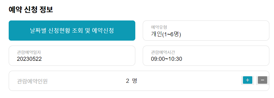 청와대 관람 예약의 경우 선착순 신청이며, 현재 개방 1년이 지난시점이기에 예약이 여유있는 편입니다. 관람 예약 가능 일은 예약 시스템 접속일을 기준으로 다음일로부터 4주간이며, 매일 00시에 갱신됨을 유의하시기 바랍니다.