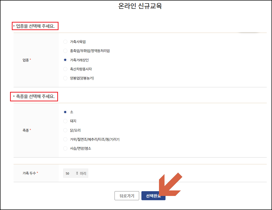 - 축산업 등록자와 가축 거래상인은 2년마다 보수 교육을 이수해야 합니다.