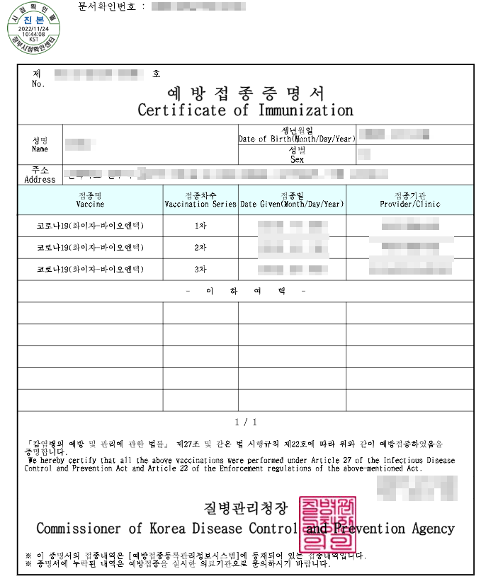 코로나 백신접종 증명서란 말그대로 코로나 바이러스에 대한 백신을 접종을 완료했음을 증빙하는 서류로 접종날짜, 백신 종류등의 정보가 표시되며, 정부 24사이트 또는 질병관리청 사이트에서 빠르게 인터넷 발급을 진행할 수 있습니다. 필리핀, 인도네시아, 일본등을 해외 여행시 요구되며 인터넷 웹사이트 또는 보건소등에서 발급 받을 수 있습니다.