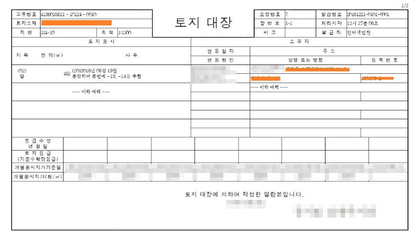 최근 전세사기등의 피해 사례가 우려될 만큼 커져감에 따라 반드시 매매 및 전세등을 진행할 경우 토지대장의 정보를 꼼꼼히 확인하는 것이 사전 피해를 막을 수 있음을 전달드립니다.
