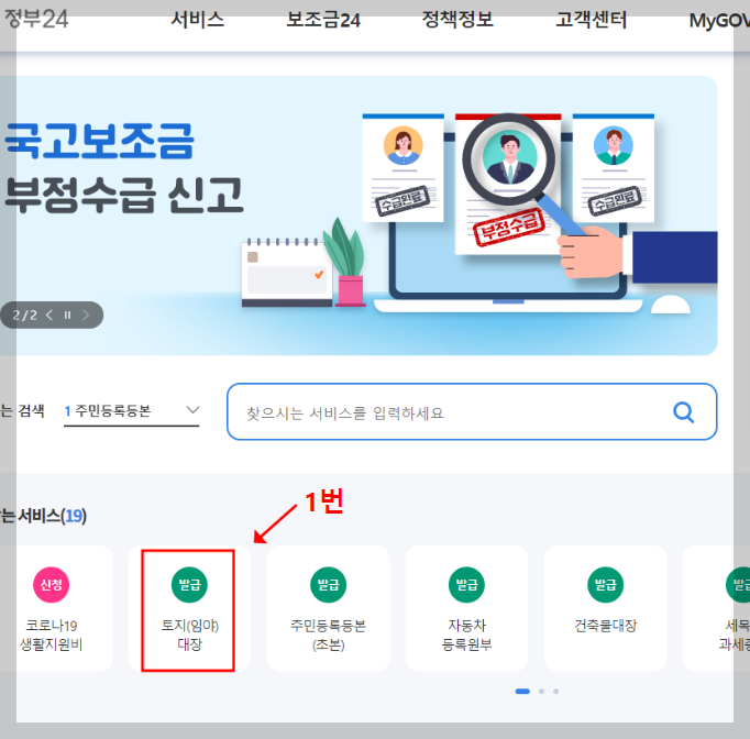 1. 토지대장 무료열람 및 발급 방법 - 정부 24사이트