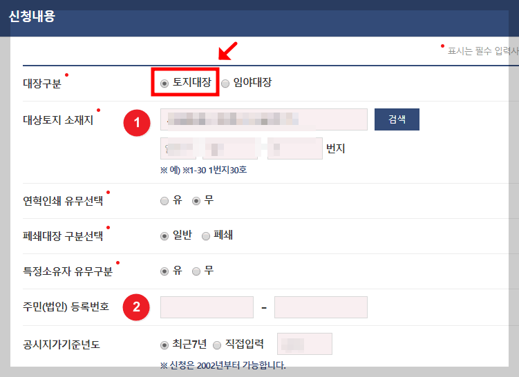 토지대장 열람 및 발급 시 유의사항.