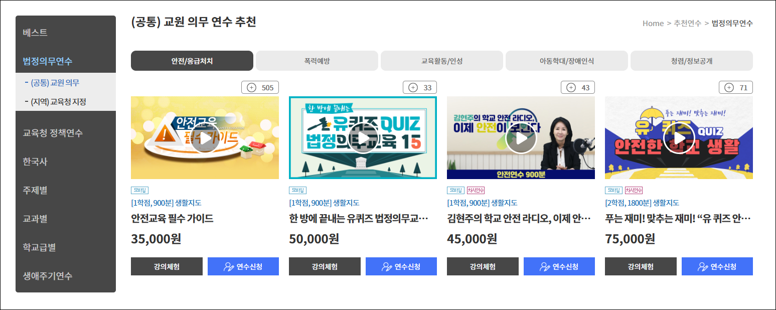 - 법정연수 및 직무연수 인정
