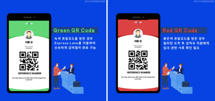 • RED QR코드 생성 : 필리핀 공항도착 후 검역국에 서류 확인 필요 (백신 미접종자는 음성확인서 지참)