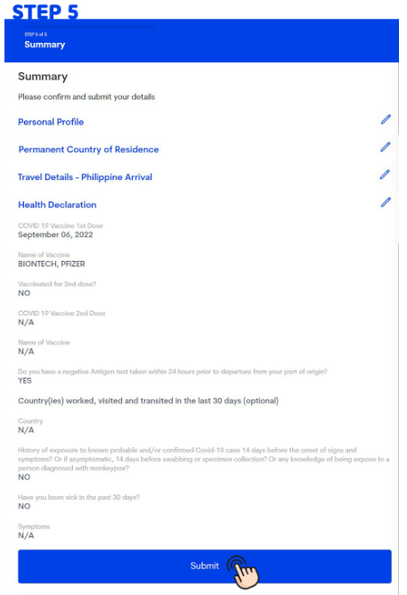 • STEP 5 -  앞서 입력한 정보들을 최종 확인 후 제출.