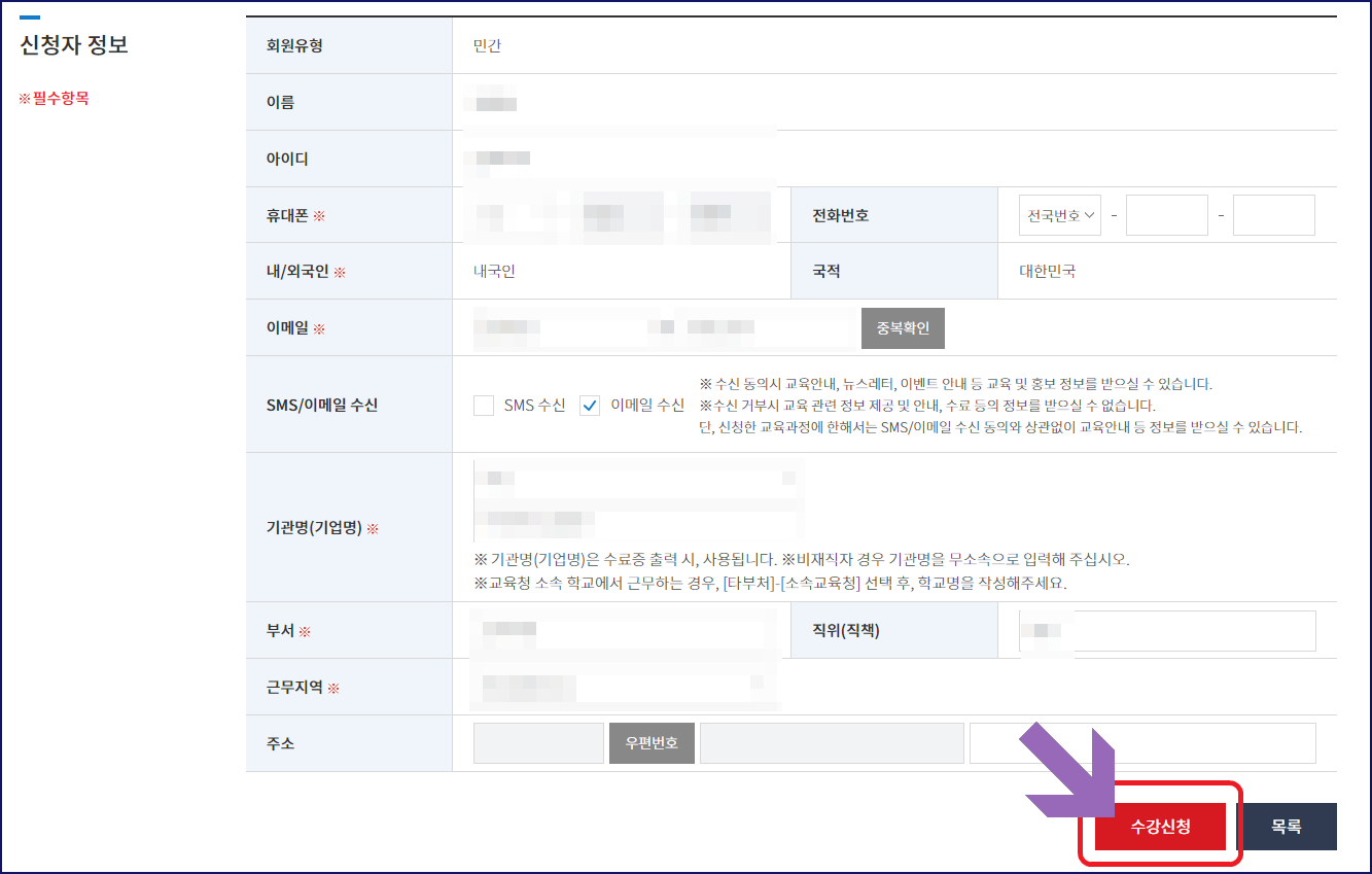 - 공무원 일 경우 : 반드시 정확한 기관명 입력