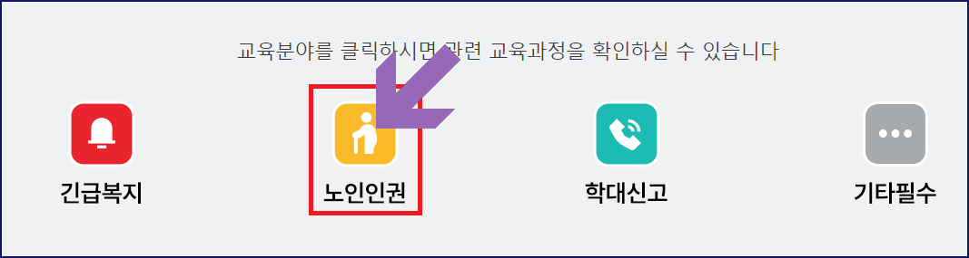 | 노인학대신고의무자 교육 | - 교육대상 : 민간+공무원 - 교육시간 : 1시간(사회복지인정시간 : 60분) |