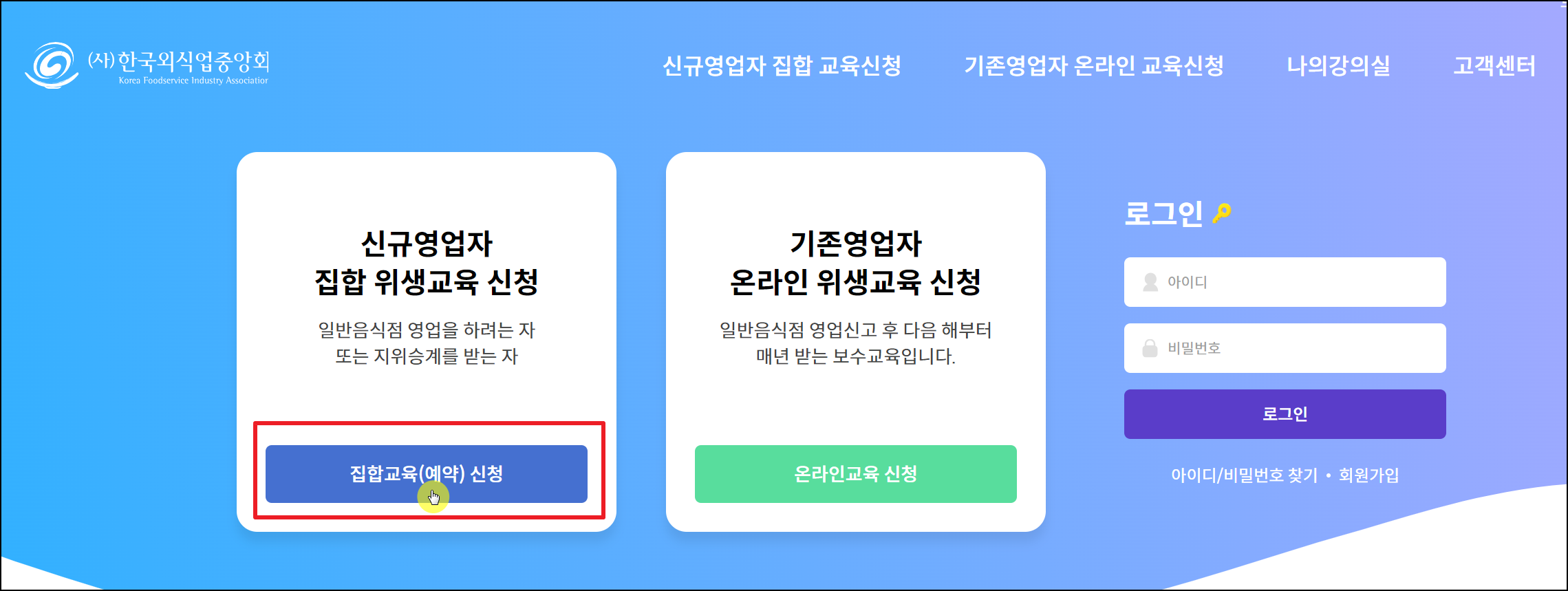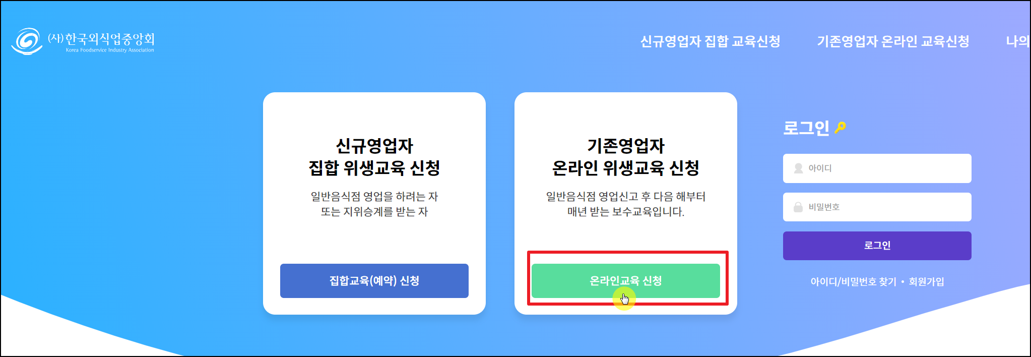 한국외식업중앙회 신규영업자 & 기존영업자 교육신청