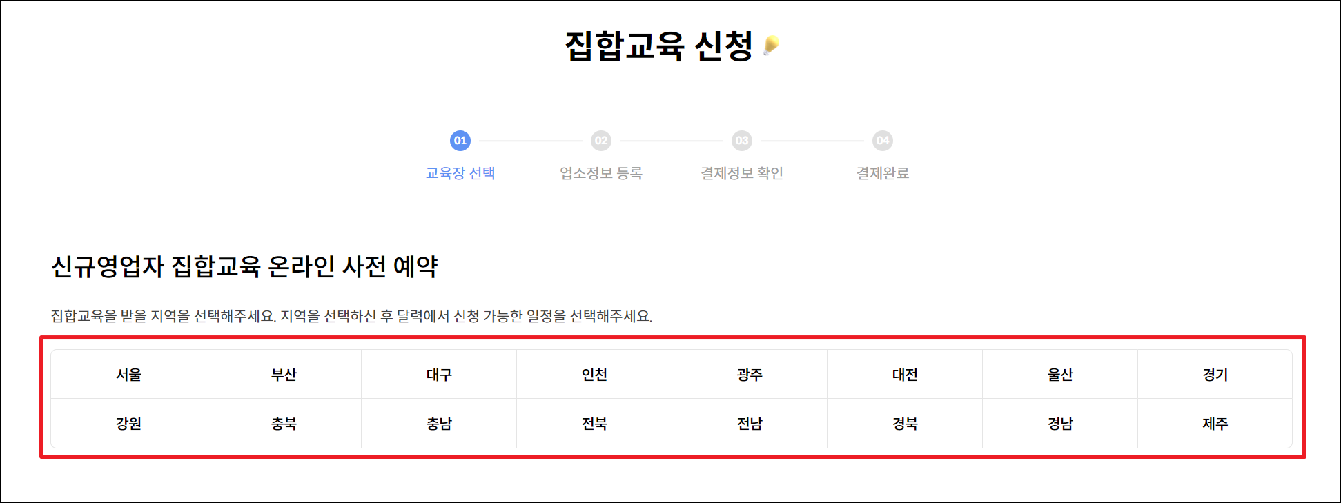 - 교육받을 장소인 지역 선택