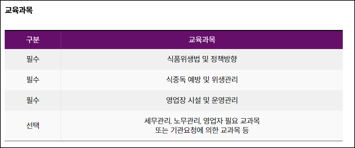 - 교육 미이수시 과태료 발생, 의무적 위생교육 이수 필요