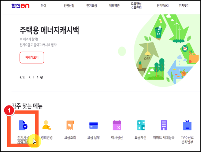 - 한전ON 홈페이지 접속 또는 한전어플 접속