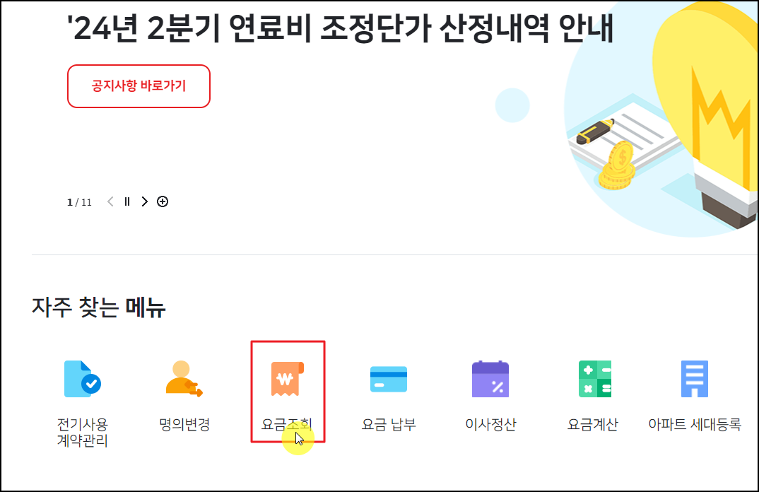 - 홈페이지 바로가기를 통해 빠르게 본인 거주지 전기요금 조회 가능.