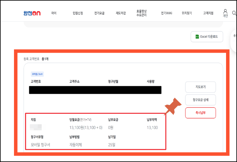 - 당월요금 및 납부차액등 한전 전기요금 정보 확인 가능
