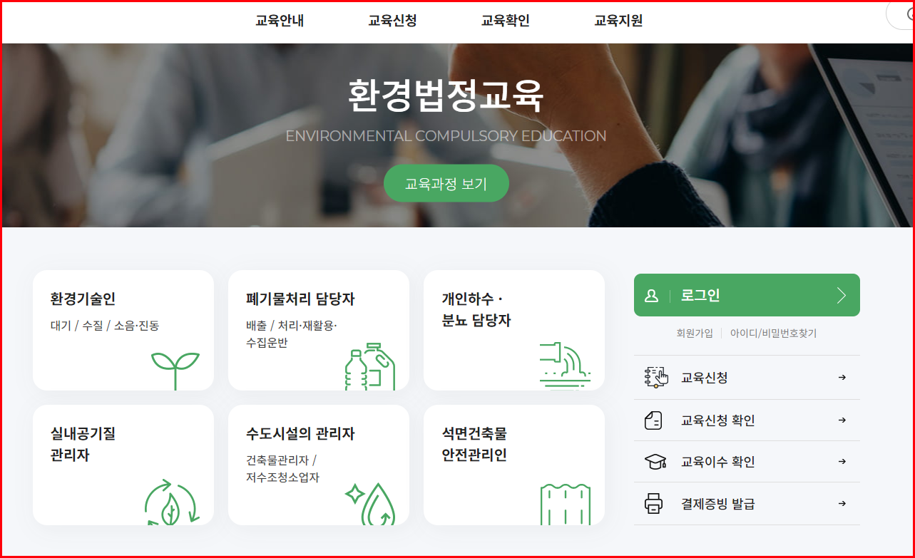환경보전협회 사이버 법정교육 수강신청 방법