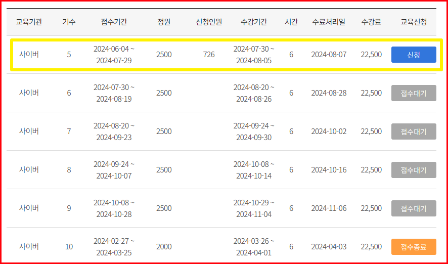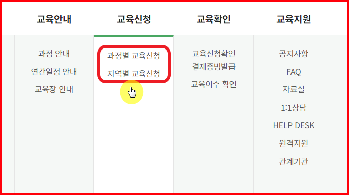 - 집합 교육과 사이버 과정 중 원하는 방법을 선택합니다.