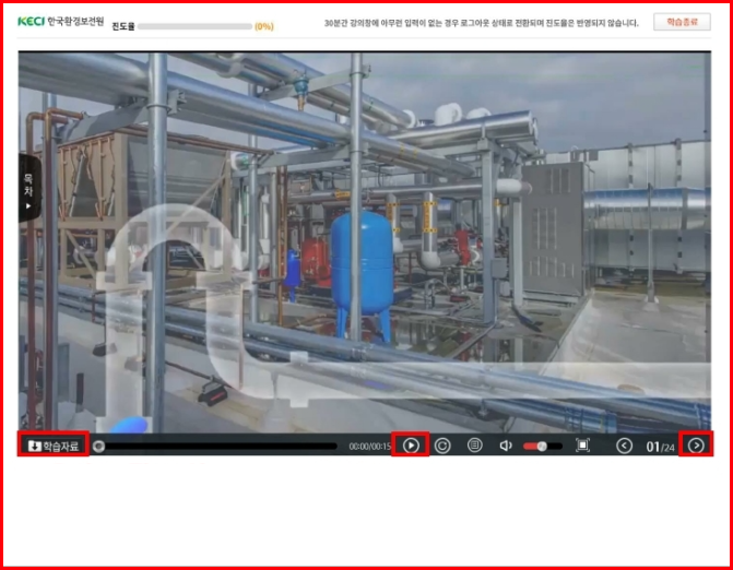 - 사이버 과정의 경우 진도율이 90% 이상이어야 수료할 수 있습니다.