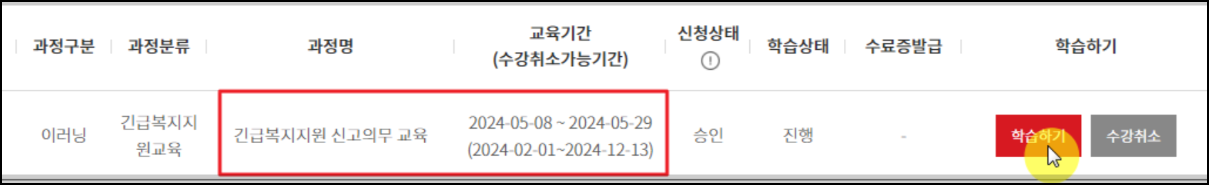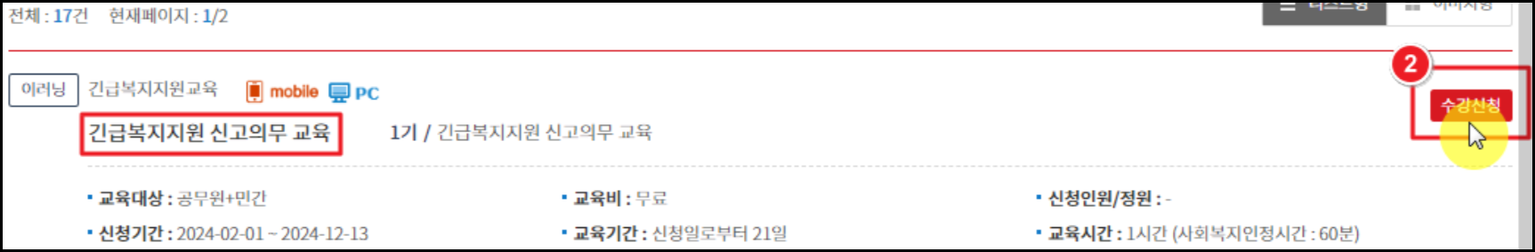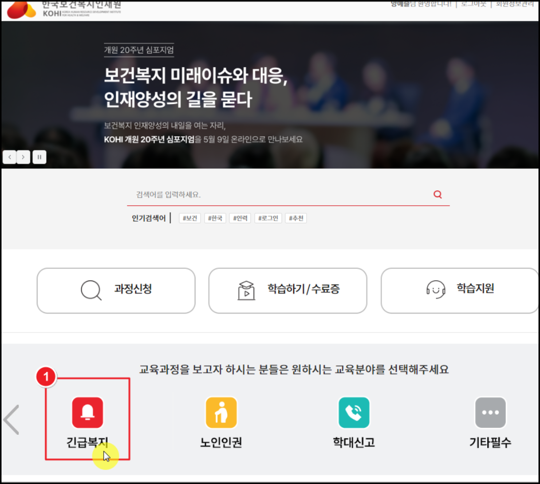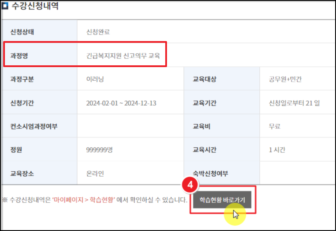 긴급복지지원 신고의무자 교육 온라인 수강신청 방법.