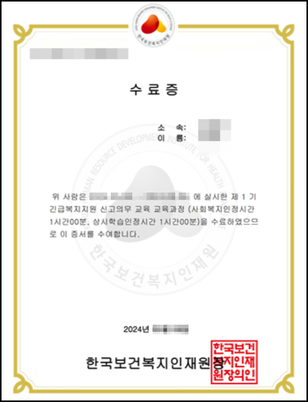 긴급복지지 신고의무자 교육 수료증 발급